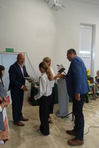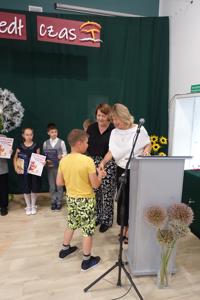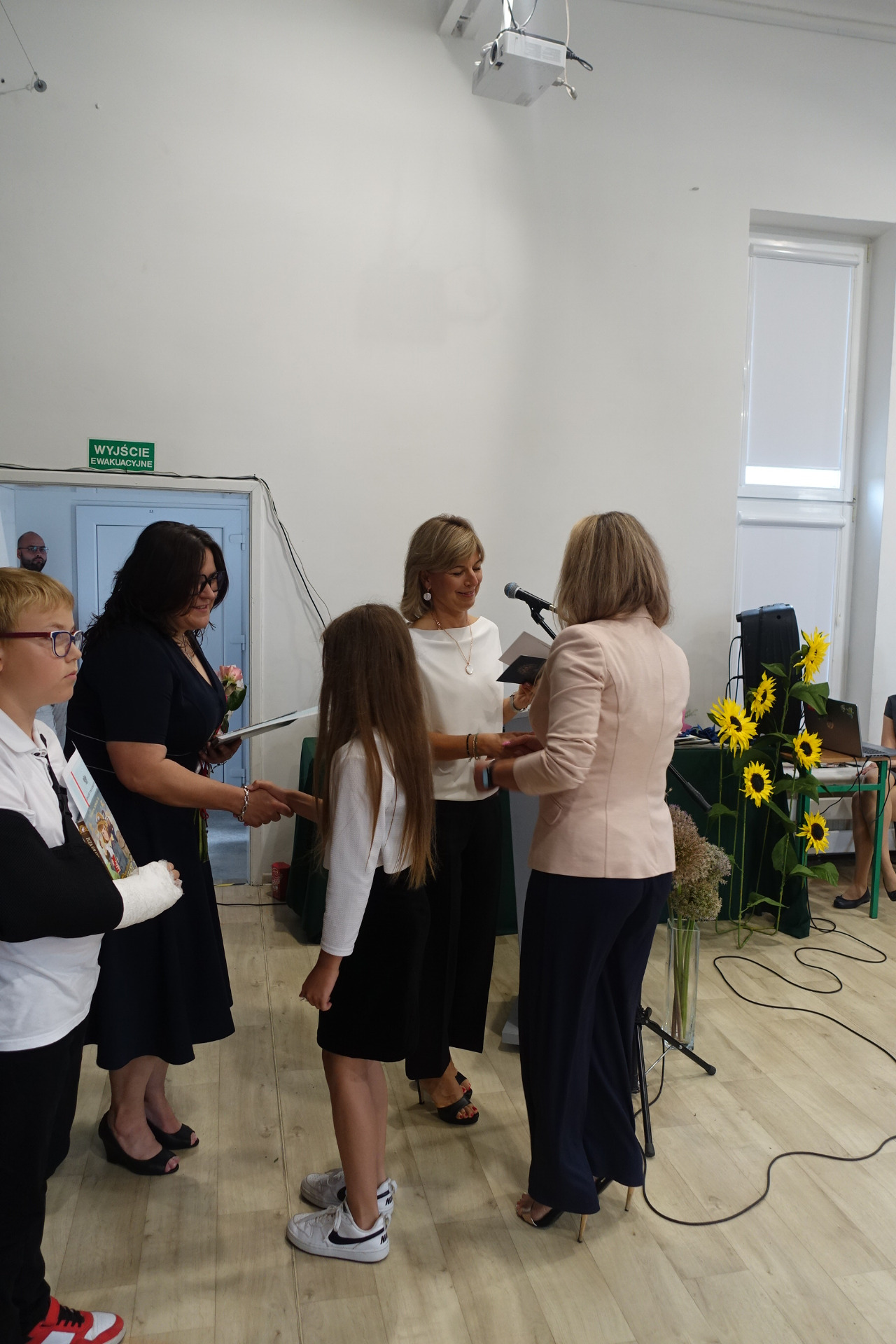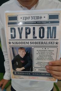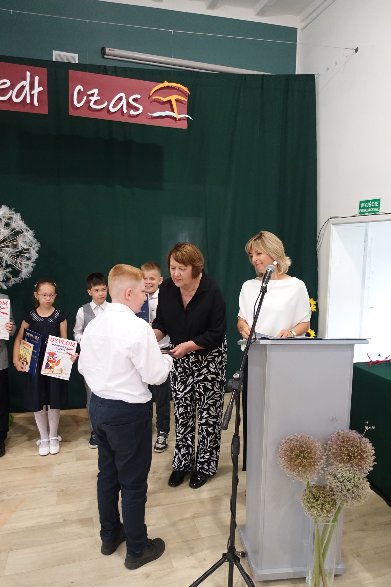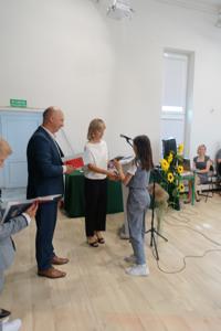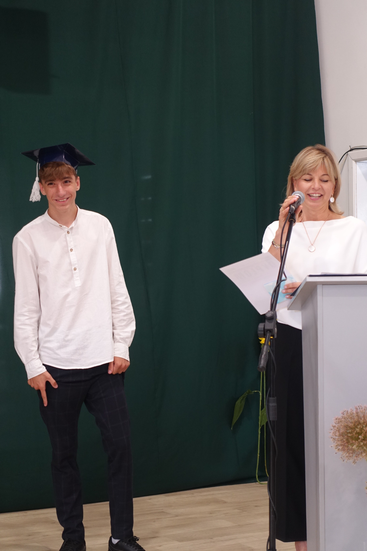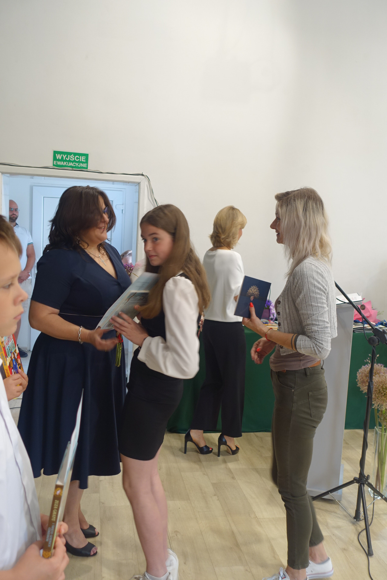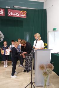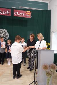 W swoim ostatnim wystąpieniu uczniowie byłej już klasy ósmej klasy dali wyraz swojej wdzięczności i podziękowania za całokształt pracy włożonej w nauczanie i kształtowanie odpowiednich postaw młodego człowieka. Było wesoło i smutno, trochę śmiechu i trochę łez. Uczniowie ze starszych klas osiągający najwyższe wyniki w nauce zostali nagrodzeni świadectwami z wyróżnieniem, a ich rodzice odebrali z rąk pani dyrektor Doroty Tulibackiej gratulacje i podziękowania. Pan Radosław Siekierka wręczył 26 uczniom stypendia za wyniki w nauce i osiągnięcia sportowe ufundowane przez organ prowadzący naszą szkołę- Gminę Pakość. Stypendia naukowe otrzymali: Hanna Bielska, Kornelia Bogusz, Oskar Kopytowski, Roksana Sulikowska, Wojciech Bogusz, Antoni Czajkowski,Piotr Kalczyński, Łukasz Niezbecki, Liliana Sikorska, Lena Sikorska, Kalina Tomaszewska, Agata Wesołowska, Paweł Kalczyński, Liliana Łukowska, Lena Wodzińska, Maciej Bielski, Julia Stiller, Jan Wiliński. Stypendia sportowe trafiły do Oskara Kopytowskiego, Miłosza Skowrońskiego, Roksany Sulikowskiej, Antoniego Zaremby, Wojciecha Bogusza, Łukasza Niezbeckiego, Zuzanny Stępniewskiej i Szymona Sulikowskiego. Nagrodę Burmistrza Pakości za najwyższe noty w nauce otrzymali uczniowie kl. VIII: Julia Stiller i Maciej Bielski. Niezwykle miłą niespodzianką okazała się nagroda specjalna ufundowana przez Radę Rodziców dla ucznia klasy VIII Nikodema Sobieralskiego za codzienną szkolną postawę pełną życzliwości i uśmiechu, za chęć niesienia pomocy młodszym, rówieśnikom i nauczycielom. A to dziś niezwykle cenne cechy.