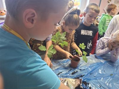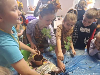 Głównym punktem były warsztaty sadzenia: po omówieniu budowy sadzonki, dzieci własnoręcznie posadziły młode drzewka dębu, klonu, buku i leszczyny w doniczkach, które później zabrały do dalszej pielęgnacji w domu!