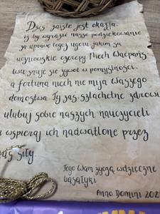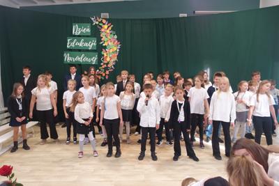 Z tej okazji uczniowie oraz przedszkolaki kościeleckiej placówki przygotowali uroczystość pełną wzruszeń i radości. W programie znalazły się piosenki oraz humorystyczne scenki z życia szkoły, które wywołały wiele uśmiechów i pozytywnych emocji. Nie zabrakło także ze strony uczniów słów wdzięczności i serdecznych życzeń dla wszystkich pracowników Zespołu Placówek Oświatowych za ich codzienny trud, zaangażowanie i serce wkładane w pracę z dziećmi.