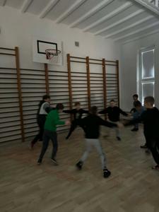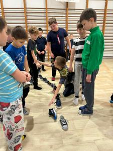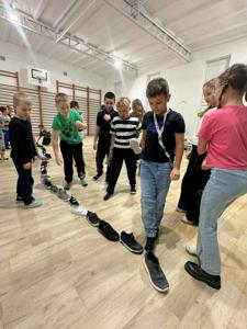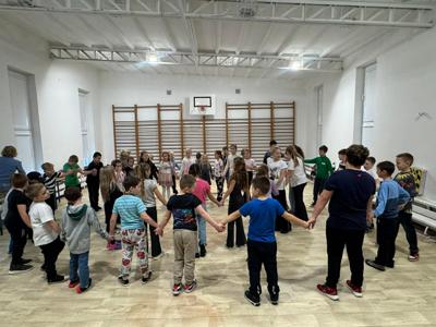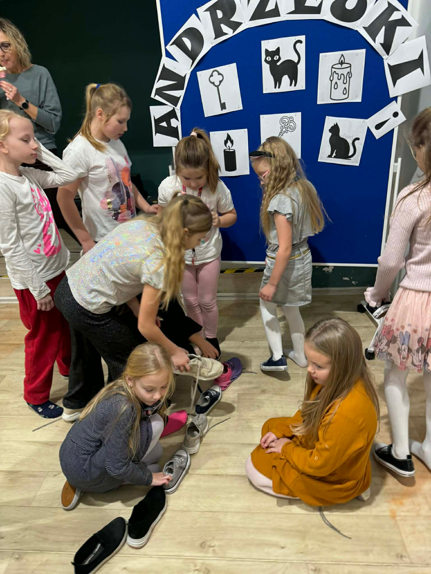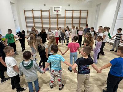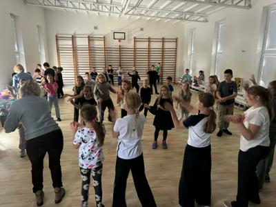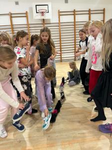 Uczniowie klas 1–3 świetnie bawili się podczas andrzejkowych wróżb, tańców i słodkiego poczęstunku.