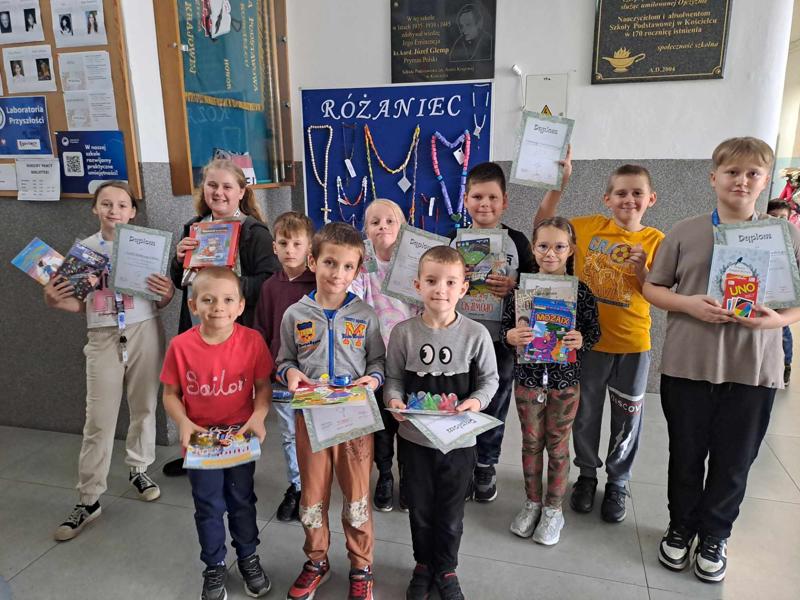 04.11.2024 Aktualności Rozstrzygnięcie konkursu na Najpiękniejszy Różaniec Z radością informujemy, iż został dziś rozstrzygnięty konkurs na Najpiękniejszy Różaniec. Oto zwycięzcy: W kategorii klas I-III: Miejsce Filip Agaciak i Laura Kołodziejczak Miejsce Adam Woźniak Miejsce... Czytaj więcej